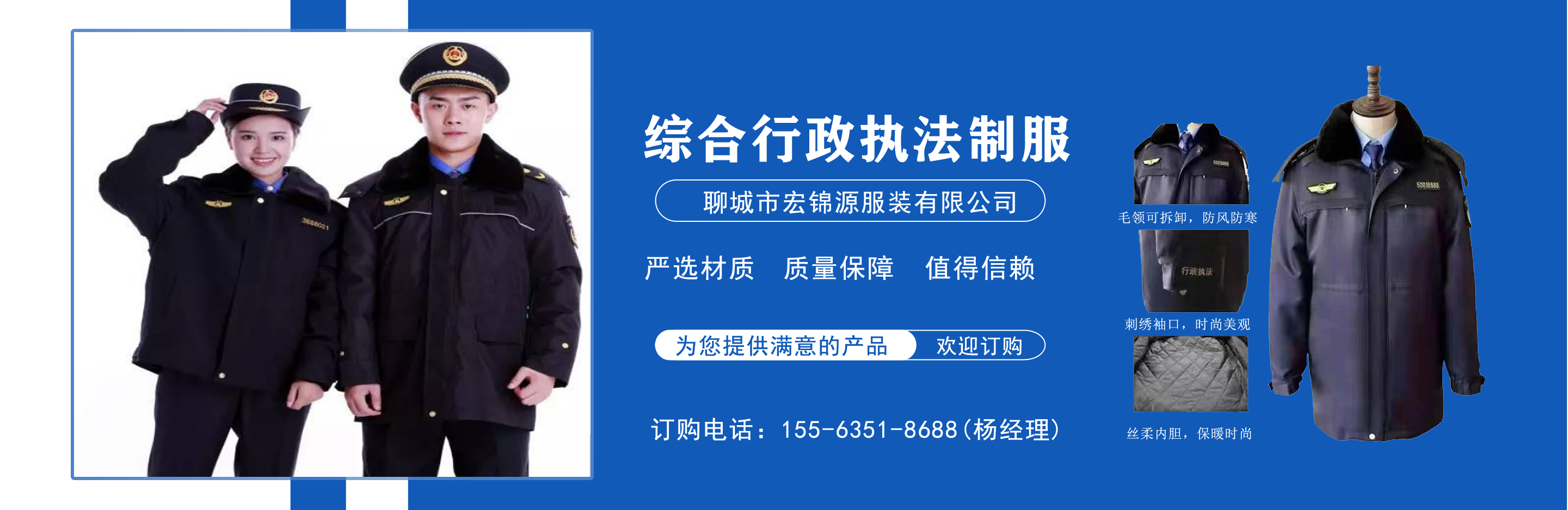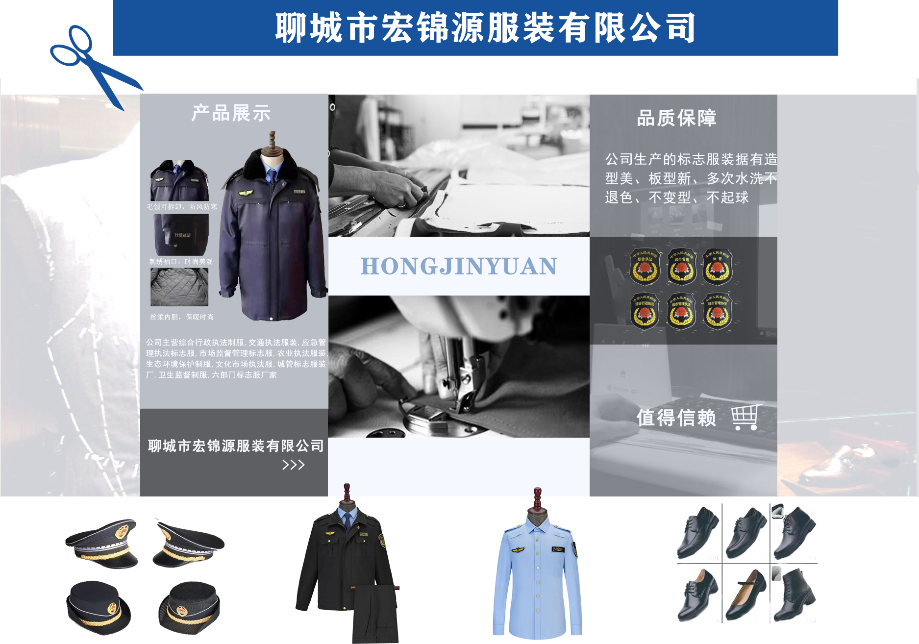 聊城市宏錦源服裝有限公司位于江北水城—山東聊城,地理位置優(yōu)越,交通便利。公司主營(yíng)綜合行政執(zhí)法制服,交通執(zhí)法服裝,應(yīng)急管理執(zhí)法標(biāo)志服,市場(chǎng)監(jiān)督管理標(biāo)志服,農(nóng)業(yè)執(zhí)法服裝,生態(tài)環(huán)境保護(hù)制服,文化市場(chǎng)執(zhí)法服,城管標(biāo)志服裝廠(chǎng),衛(wèi)生監(jiān)督制服,六部門(mén)標(biāo)志服廠(chǎng)家等,值得信賴(lài)! 公司生產(chǎn)的標(biāo)志服裝據(jù)有造型美、板型新、多次水洗不退色、不變型、不起泡。 “認(rèn)真辦事,踏實(shí)做人”是宏錦源的企業(yè)精神,我們的宗旨是:“用服務(wù)與真誠(chéng)來(lái)?yè)Q取你的信任與支持,互惠互利,共創(chuàng)雙贏(yíng)!”我公司愿與國(guó)內(nèi)外各界同仁志士竭誠(chéng)合作,共創(chuàng)未來(lái)企業(yè)目標(biāo):在已選定的服飾領(lǐng)域中,成為行業(yè)的卓越者。 經(jīng)營(yíng)理念:追求產(chǎn)品卓越,為用戶(hù)提供完美、高效的服務(wù)。...